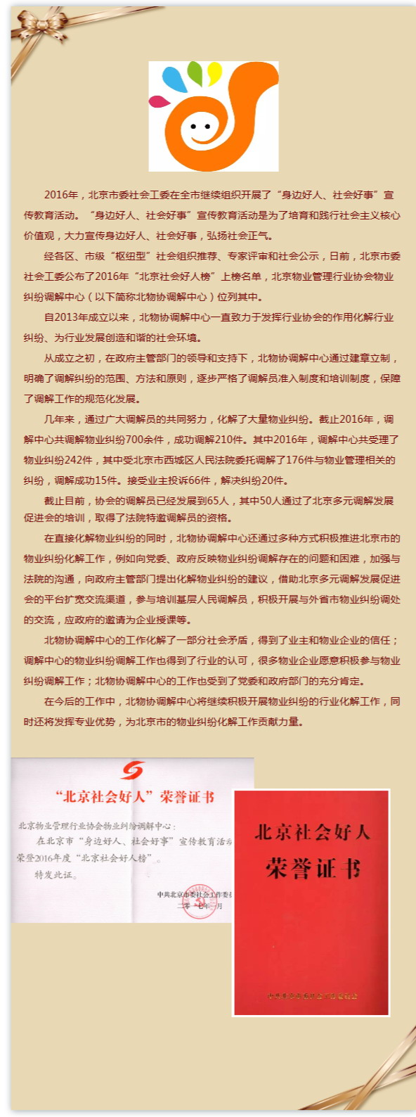 北京物业管理行业协会物业纠纷调解中心荣登2016年“北京社会好人榜”
