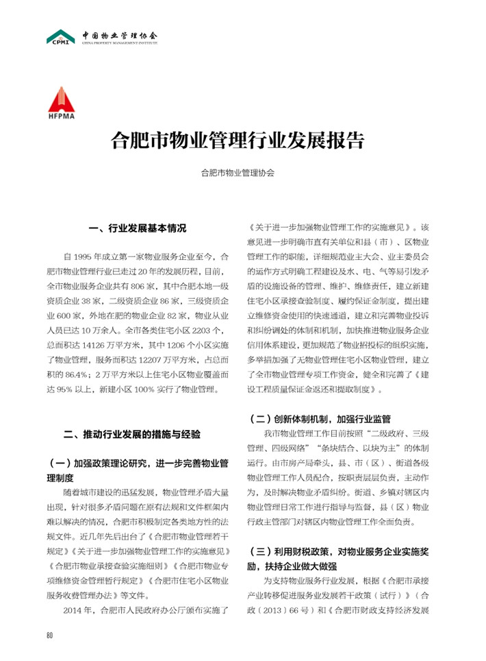 合肥市物业管理行业发展报告(2015)