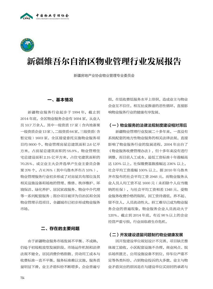 新疆维吾尔自治区物业管理行业发展报告(2015)