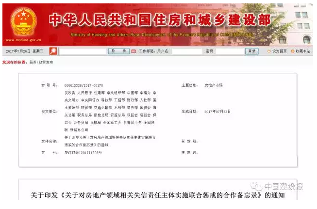 为贯彻党的十八大和十八届三中、四中、五中、六中全会精神,落实《国务院关于印发社会信用体系建设规划纲要(2014—2020年)的通知》(国发〔2014〕21号)、《国务院关于建立完善守信联合激励和失信联合惩戒制度加快推进社会诚信建设的指导意见》(国发〔2016〕33号)和《国务院办公厅关于加快培育和发展住房租赁市场的若干意见》(国办发〔2016〕39号)要求,着眼于培育和弘扬社会主义核心价值观,加快推进社会信用体系建设,建立健全跨部门失信联合惩戒机制,促进房地产领域相关主体依法诚信经营,国家发展改革委、人民银行、住房城乡建设部、中央组织部、中央宣传部、中央编办、中央文明办、中央网信办、科技部、工业和信息化部、财政部、人力资源社会保障部、国土资源部、环境保护部、交通运输部、水利部、商务部、国资委、海关总署、税务总局、质检总局、安全监管总局、银监会、证监会、保监会、公务员局、民航局、全国总工会、共青团中央、全国妇联、铁路总公司就房地产领域相关失信责任主体实施惩戒达成如下一致意见。