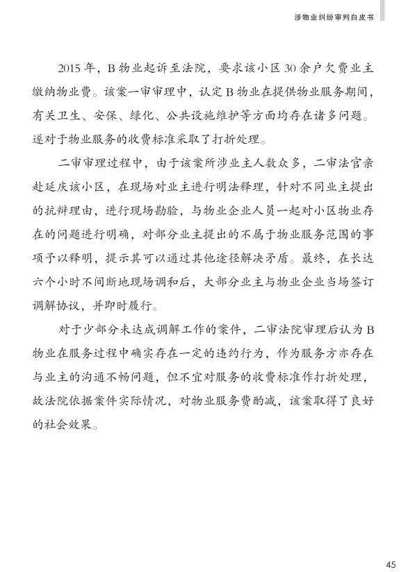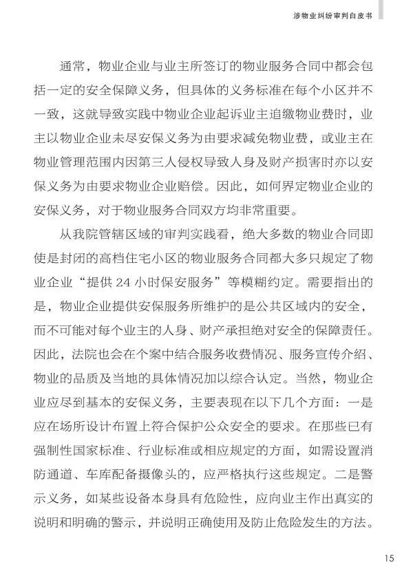 近年来,伴随着国内房地产市场的活跃态势,物业服务行业也得到迅猛发展。物业服务的好坏直接决定着业主的生活质量,同时也影响着物业的价值。物业服务同时带有社会公共服务和个体服务特征,是一种全天候、不间断、全方位、多层次的过程性服务。物业服务企业(以下简称物业企业)与业主之间的关系既是服务与被服务的关系,又是相互依存的关系,业主与物业企业之间应当建立起一种良性循环的关系,从而促进物业服务行业有序发展,体现行业市场化的意义。通过《中华人民共和国物权法》、《物业管理条例》、《最高人民法院关于审理物业服务纠纷案件具体应用法律若干问题的解释》等一系列法律规范的实施与完善,此类案件的裁判依据更为清晰明确,裁判尺度日趋统一,裁判质量日益提升。同时,对广大业主和物业企业而言,自身的行为界限、权益保护范围和权利救济方式都发生了广泛而深刻的变化。为进一步维护物业服务秩序,保障各方社会主体的合法权益,规范物业服务行业的经营活动,协调业主和物业企业之间矛盾,对广大公众进行正确引导和答疑解惑,我院梳理分析了近五年来审理的涉物业纠纷案件,从中归纳整理出十个具有典型性和新颖性的案件进行发布,通过典型案例和重点问题的提示建议,引导各方社会主体充分防范风险,正确理解法律,合法理性维权。