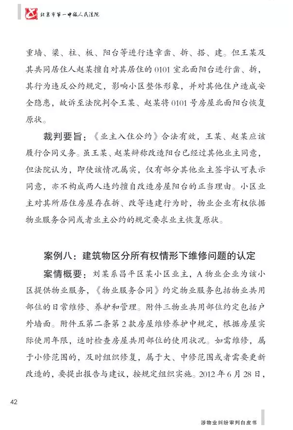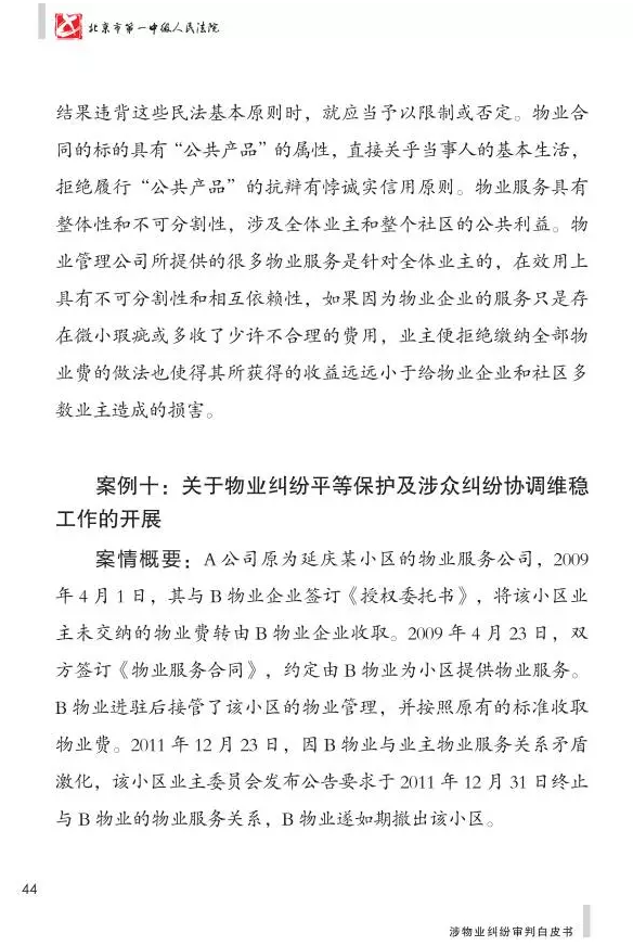 北京市第一中级人民法院涉物业纠纷审判白皮书