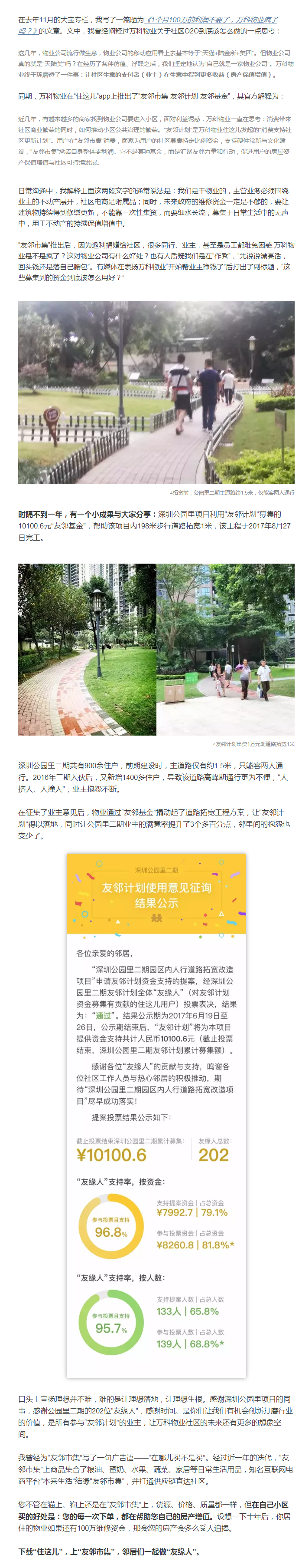 万科物业:友邻计划落地,帮业主挣的钱花出去了