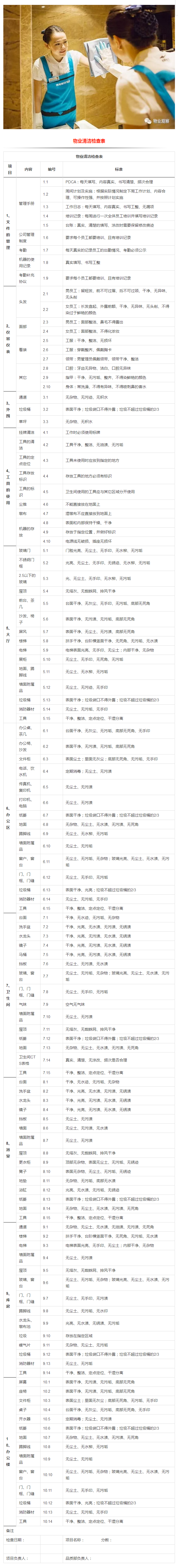 物业清洁检查表(收藏)