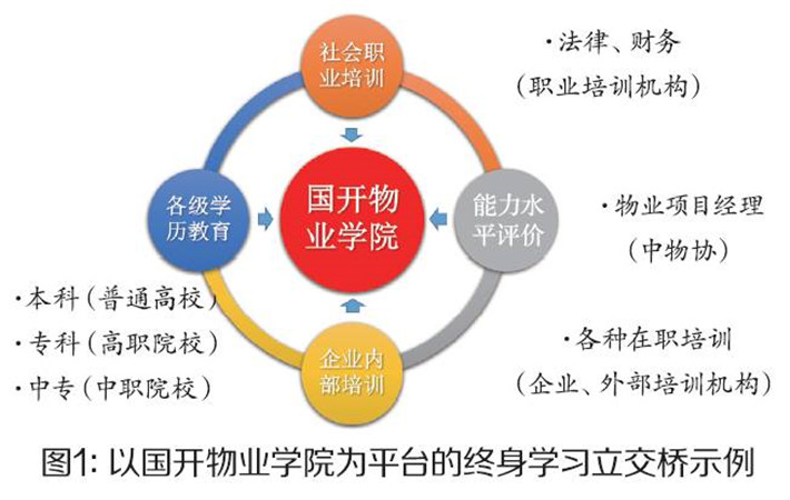 二是新型的制度保障。学历和非学历证书或同类型教育之间成果融通的意义巨大。但是,由于我国原有的体制问题导致各类学习成果间的割裂,无法满足行业人力资源发展的需求。现代化的终身教育体系不能是各类教育形式间的简单叠加,而是满足用人单位需求和员工职业生涯发展前提下的相互融通。我们将充分依托国家开放大学学分银行承接的教育部“国家继续教育学习成果认证、积累与转换制度的研究与实践”项目和“继续教育学习成果认证、积累与转换”试点工作成果,为打通物业管理行业学历和非学历教育的融通提供有力的制度支持。