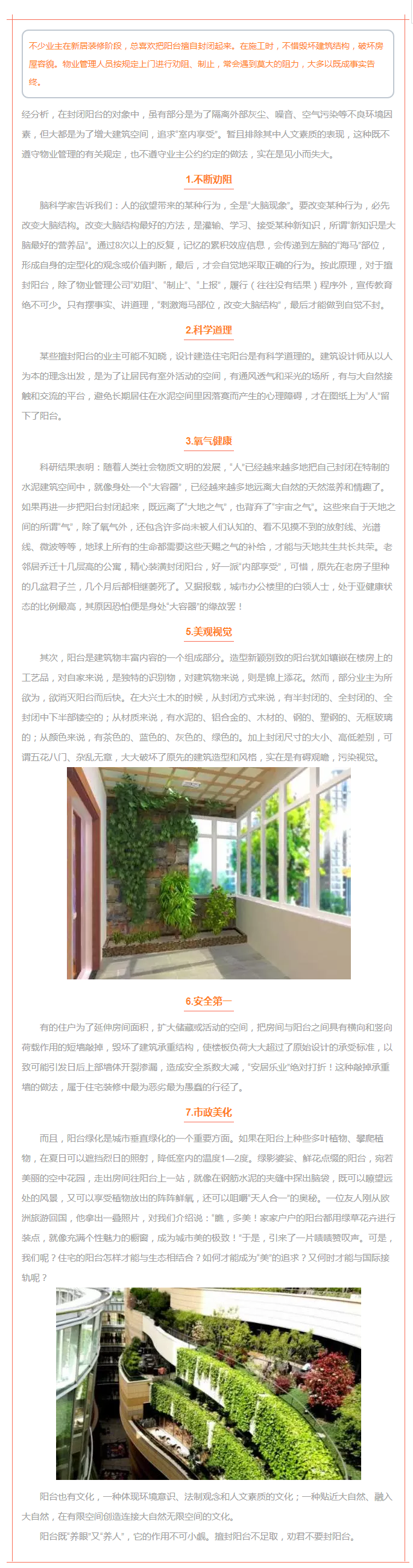 物业如何有效的劝阻业主不封阳台