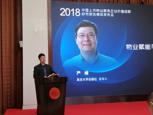 严峰董事长对蓝皮书在复旦大学出版社出版发行感到荣幸,并表示出版社将一如既往地大力支持各类创新研究的学术出版,实现较大的社会效益。之后,他受托宣读了2018年中国最具综合竞争力上市物业服务企业、最佳经营绩效上市物业服务企业等名单。