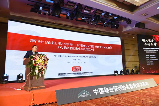 中国社会科学院财经战略研究院副研究员蒋震做题为《新社保征收体制下物业管理行业的风险控制与应对策略》的主题讲座。