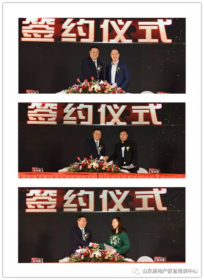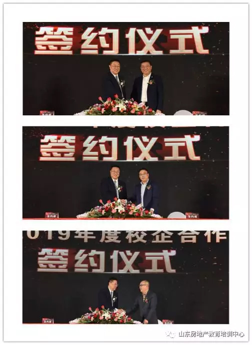 明德物业、青岛新时代物业、济南新汇物业与山房教育签订2019年校企合作协议。