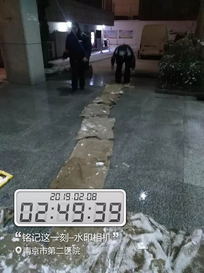 2月7日,当人们沉浸在春节的温馨团圆中时,我们的物业人便已再一次全体待命,铁锹、扫帚、洒水车、草垫等一件件“除雪利器”,亦严峻以待,南京春节"雪战"一触待发。
