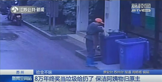 苏俊:年终奖被当垃圾扔,保洁员物归原主