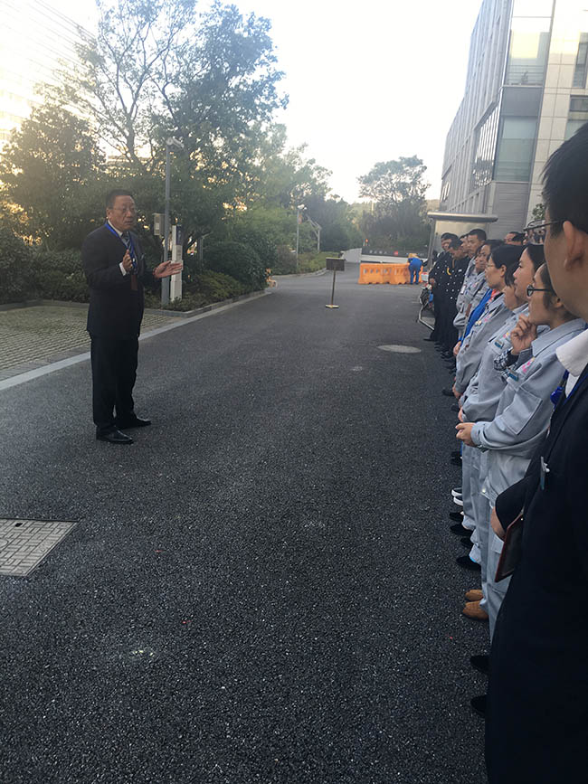 老金来自北京,2019年是他来苏州的第10年,也是在天鸿宝地物业专利局项目过年值班的第5个年头,和平时上班一样,8点他准时出现在专利局项目,院内各个角落都会亲自巡视一遍,问候坚守岗位的员工,协调督导节日期间的工作。