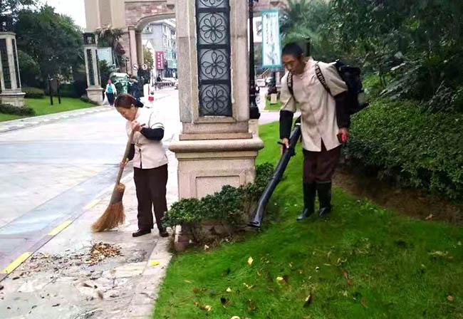 新明半岛保洁人员分工明确、责任到人,实行分楼分片管理,楼外地面道路每日清扫两遍,垃圾日产日清,做到绿篱无杂物、百平米无烟头、草坪无纸屑,并定期消毒。