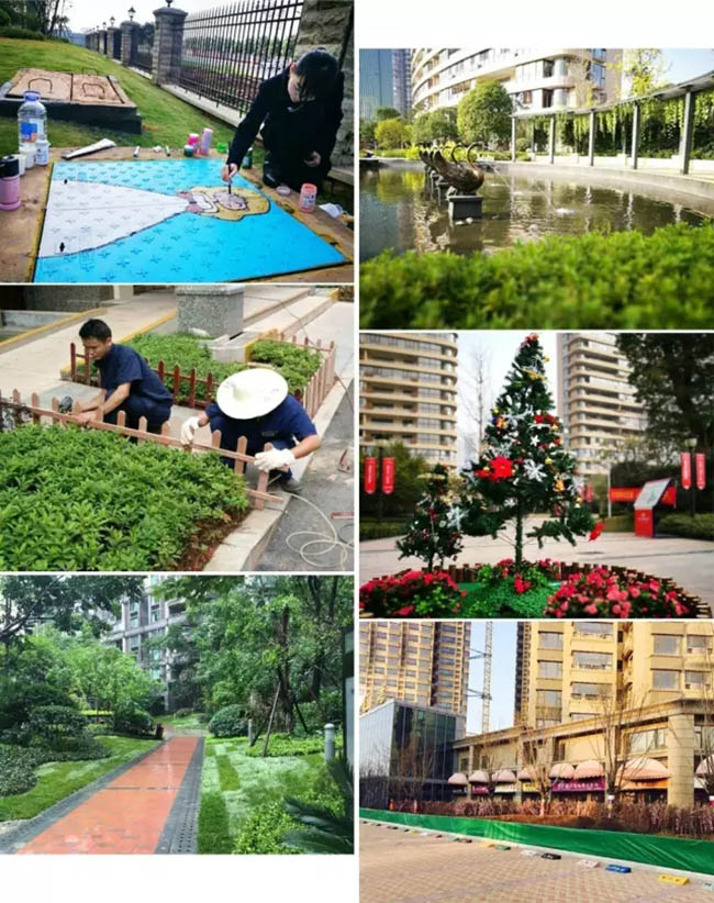 园林的美丽不仅仅在于当初的设计,更在于物业后期的维护及保养。井盖上的图画,绿植拐角处的自制栅栏,水景和小路,节日的装饰等等,一笔一画扮靓了每处角落。