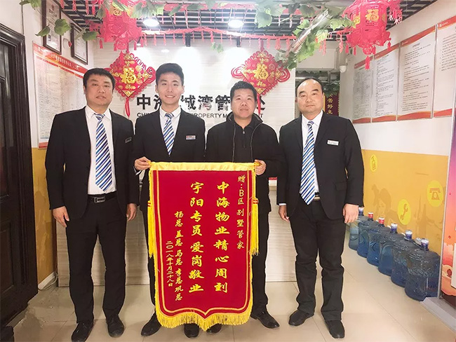 经过冯宇阳不懈努力,险情全部排除。大雨过后,5户业主怀着感激之情,联合给冯宇阳送来了锦旗表达谢意,并一致决定在房屋装修结束后将装修保证金全部转为物业费。