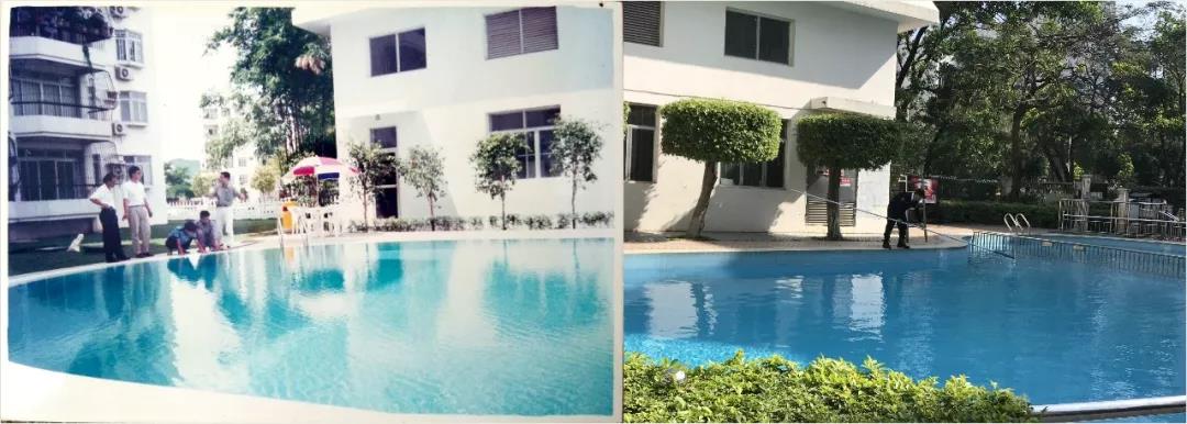 (万科物业第一个项目深圳天景花园泳池一角今昔对比,图片来源:深圳万科物业)