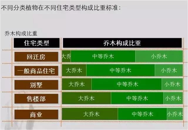 “点景大乔木、贵树——中等大乔木——其它小乔木——大灌木、球形植物——小灌木及地被灌木——时令花卉——草坪”