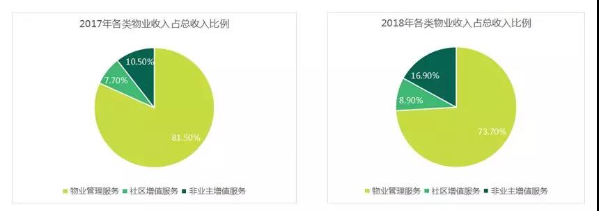 看起来物业管理服务收入依然占据着大半壁江山,但是相比2017年,占总收入占比下降了约7.8%,在收费管理面积增速约50%的情况下,物业管理服务占总体收入的比例在减少,由此可见,碧桂园服务采用了先大量获取管理面积,再进行提效管理的策略。