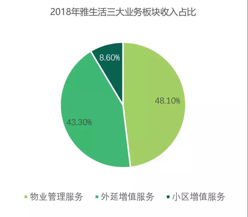 雅生活服务的收入主要来自三大板块:物业管理服务、外延增值服务及小区增值服务。