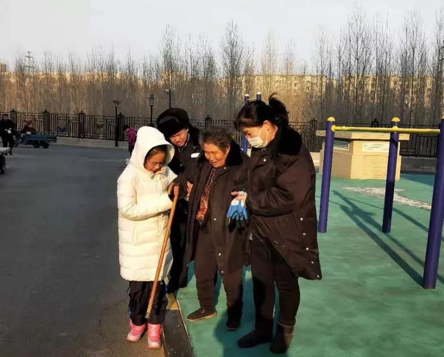 在对话中得知老大娘是迷路了,既不知道自己家的楼号,也不记得家人的电话,只是模糊的说着一个人名,得知此信息,朱殿华马上联系物业前台进行查询。于此同时,秩序部队长王云波第一时间赶到,并把自己的外套脱下来给老大娘披上,一起陪着她等待消息。