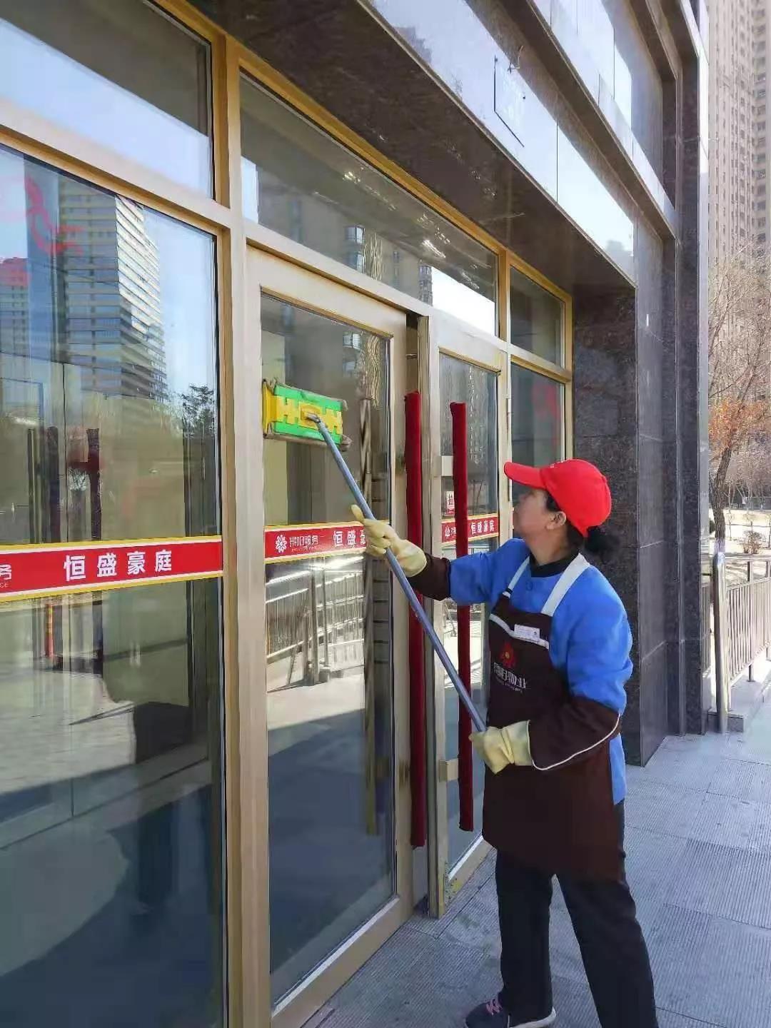 不仅室外进行清理,室内大堂的清洁也是每日必不可少的一项。