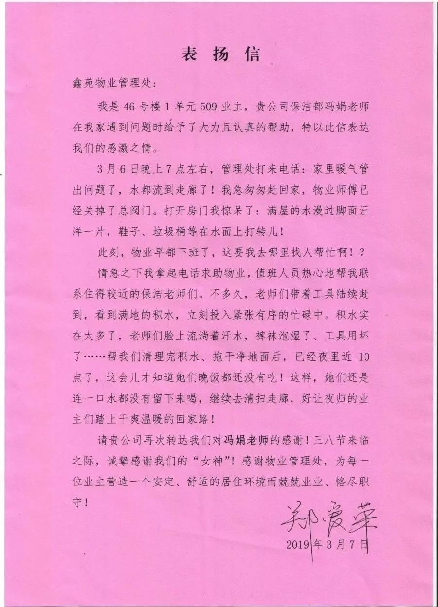 一封封表扬信,道不尽业主的感动,王小翠们兢兢业业,将美丽与洁净的环境带给业主,她是我们身边的女神!