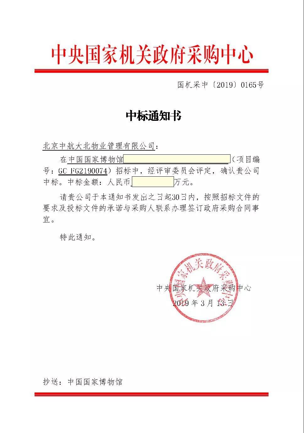 此前,中航大北物业还成功中标了中国国家博物馆的文保院大楼工程运行维护项目。