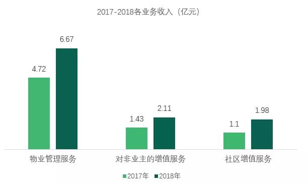 物业管理服务是永升生活服务最大的收入来源。2018年,物业管理服务收入为6.67亿元,占其总收入的62%,较2017年同比上涨41.2%。