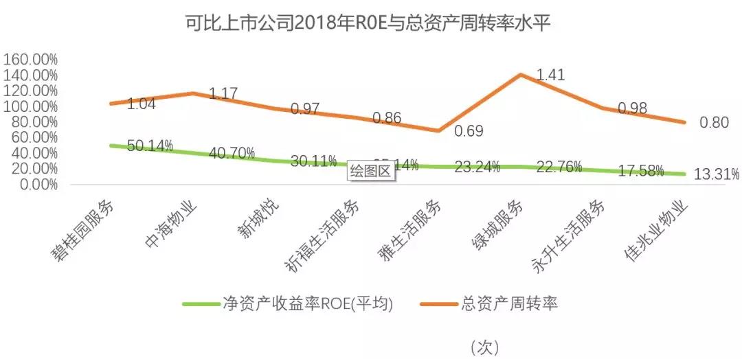 虽然利润率处于同比上市公司较低水平,但是绿城服务的ROE水平相较于其低毛利率有较大提升。主要源于公司的总资产周转率位于可比上市公司最高水平。