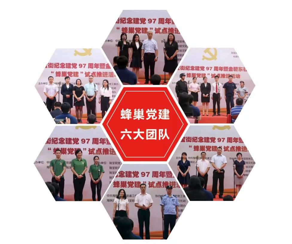 “蜂巢党建”由党委核心团队、居民代表团队、专职社工团队、物业管理团队、区域单位团队和专业人士团队等六大团队组成,协调解决社区内大大小小的矛盾纠纷,维护社区的平安和谐。