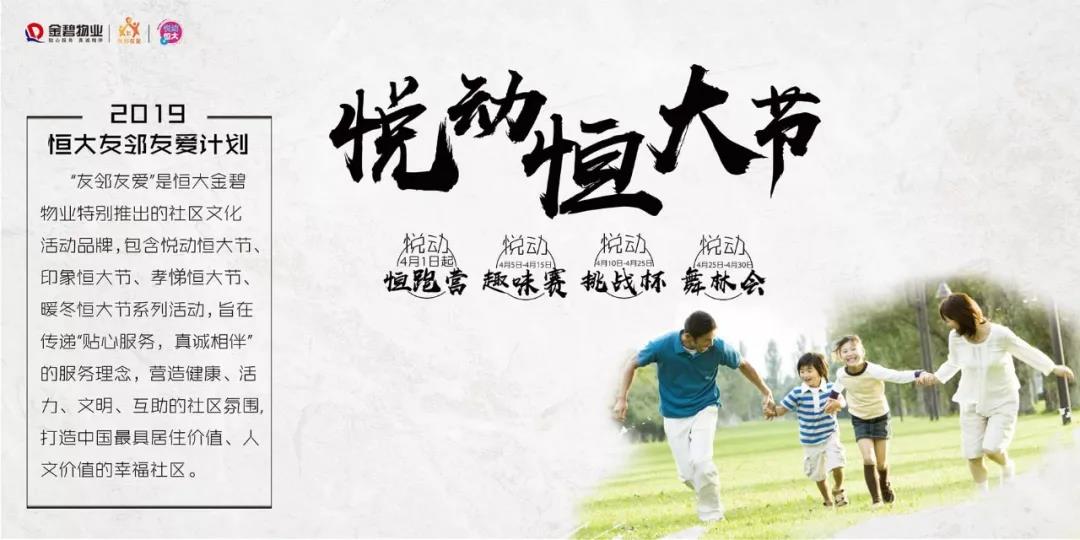悦动恒大节作为2019恒大“友邻友爱计划”的首个系列活动,恒跑营、趣味赛、挑战杯、舞林会将贯穿整个四月,让恒大金碧物业全体业主在家门口,就能享受全民狂欢式的运动乐趣。