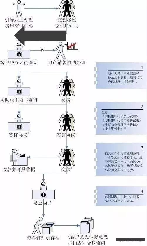 1 顾客到达房屋交付现场或服务中心前台后,应安排专人指引顾客办理房屋交付手续。