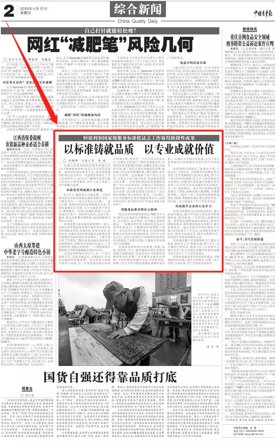 我公司国家级服务标准化试点工作阶段性成果刊登《中国质量报》。