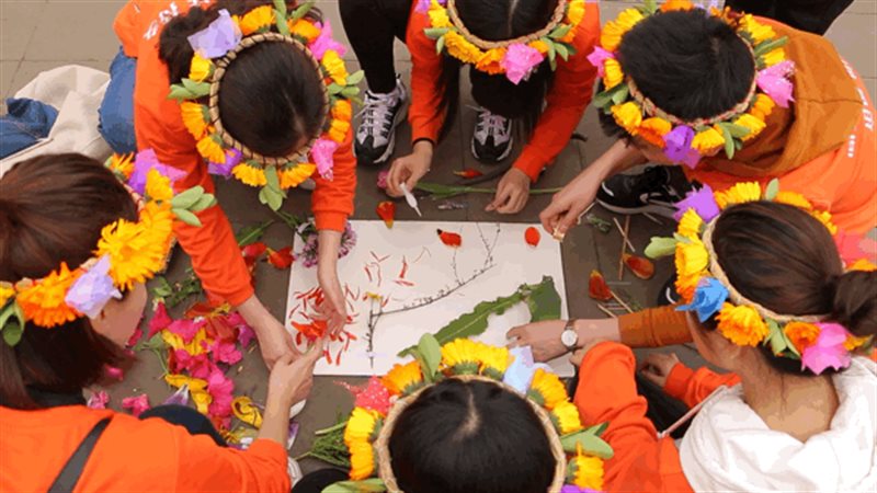 ▲花花世界:为呈现完美的花卉3D效果图,大家不停收集路边的野花、落叶,考验团队的动手能力,