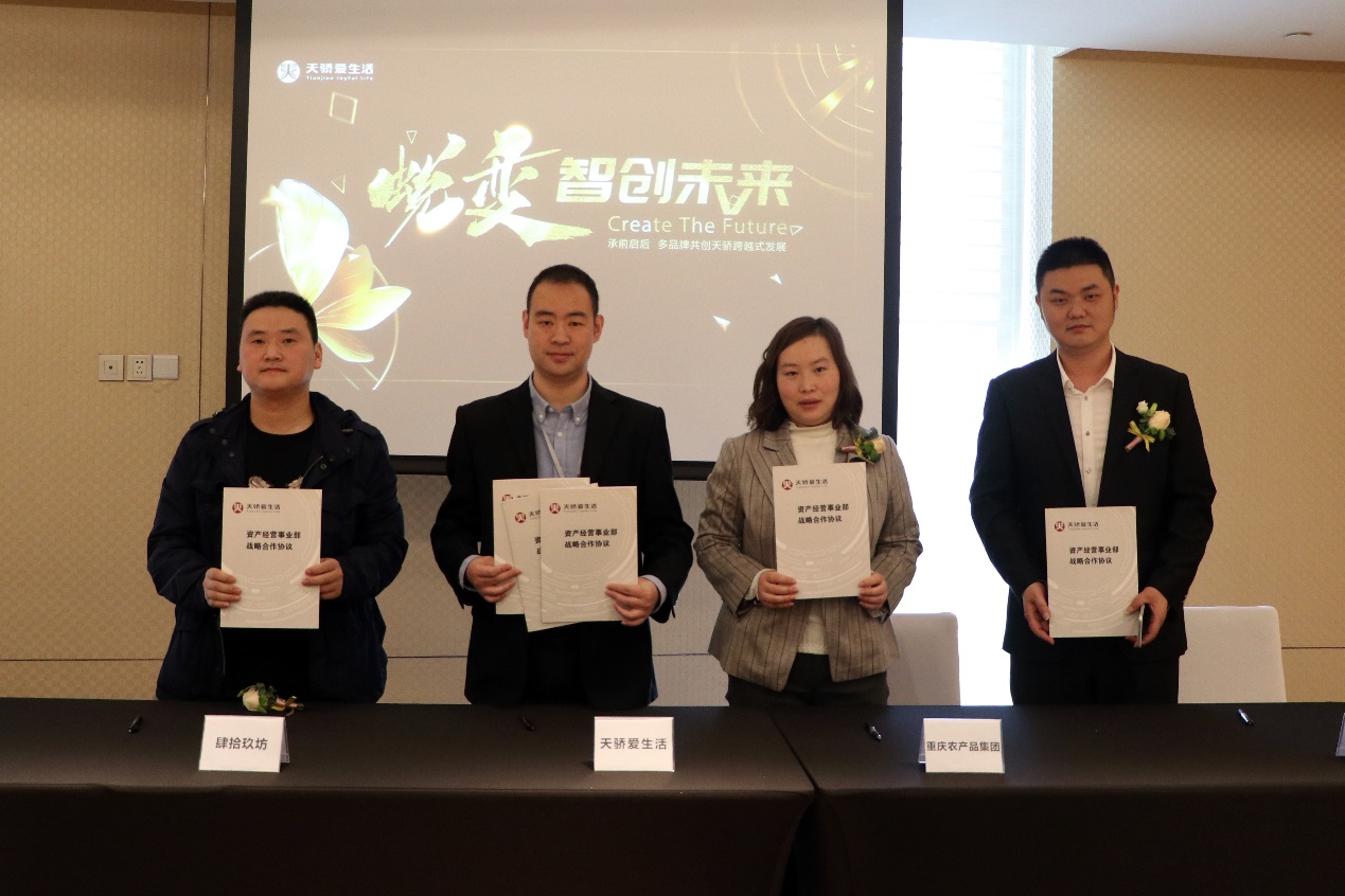 优质的战略合作商是天骄爱生活快速发展的助推器,年度合作商代表通融+家、多利农庄、公众通、分众传媒、万腾广告、中国移动重庆公司、重庆红星美凯龙、皓齿健、联天科技、肆拾玖坊、重庆农产品集团、大田小家、多孚家政、云驹智能等和资产经营事业部各业务中心、专业公司签订了年度战略合作协议,携手共进,共谋发展。