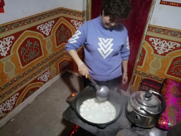 勤于传承中华民俗文化,阿依夏木•拜克尔在两年里给乡亲们手把手的教授自己的技能,除夕包饺子、正月十五煮元宵、端午节包粽子、中秋节烤月饼。还有农村应季食物的厨艺,阿依夏木•拜克尔又一餐一餐把在哈密老家学会的“榆钱蒸饼”、“凉拌苜蓿”、“素炒油白菜”、“羊肉小米粥”菜肴做法传授给自己结亲的农牧民,在传授技艺、交流沟通经验,增进乡情、亲情的同时,更多的是引导乡亲们改变固有的生活和饮食习惯。