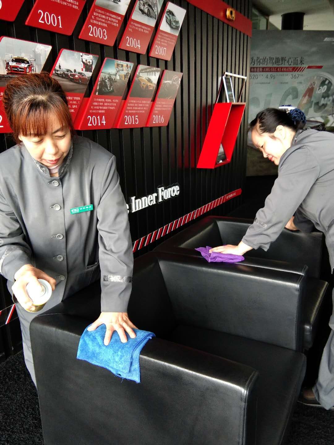 每年的奔驰总部都会对各经销商做一次全面的经标检查,物业工作对于经标检查也是一项重要的衡量标准之一,我们作为甲方的服务者,环境卫生方面就是占首要部分,7年来我经历了7次经标检查,每一次都是一次严格的考验,过程是艰辛的,但每次的经标结果都是令人欣慰的。在每次经标检查的期间,我和我的同事们都会从一大清早一直忙碌到很晚,几天下来每个人腿脚疼痛,脸庞浮肿,但是当我知道甲方经标检查顺利通过后甚感欣慰,觉得所有的付出都是值得的、有价值的。