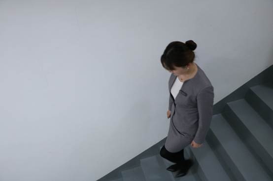 下班高峰期,她总是会选择走步梯,每次都笑呵呵的说:“锻炼身体呗!”其实是不想耽误客户的时间。