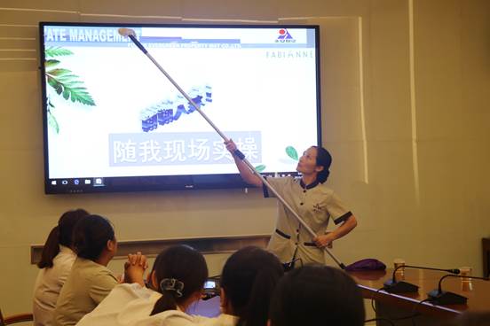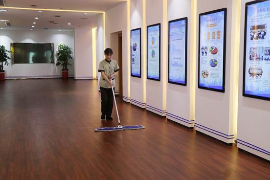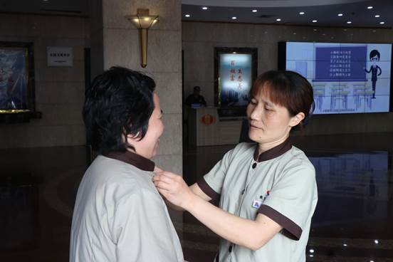 近20年里,每次工服口袋里总会带足三样东西:纸巾、垃圾袋和小刀。她在日常工作中不断摸索、改进新保洁方式,研究了一些小技巧。比如:口香糖沾到地上,很难清除,我们都会带一把小刀,轻轻刮干净,然后用二次纸巾擦拭干净,这样技能节省时间,又能节约成本;还有卫生间的擦手巾,我们擦手后不会扔掉,会二次利用,在回岗位的过程中,发现那里有脏的地方就擦拭干净,好用又节约等等,这些小细节看是微不足道,但是,细节可以打败一切源泉。每次培训都会将自己的摸索出的技巧毫无保留分享地分享给大家。