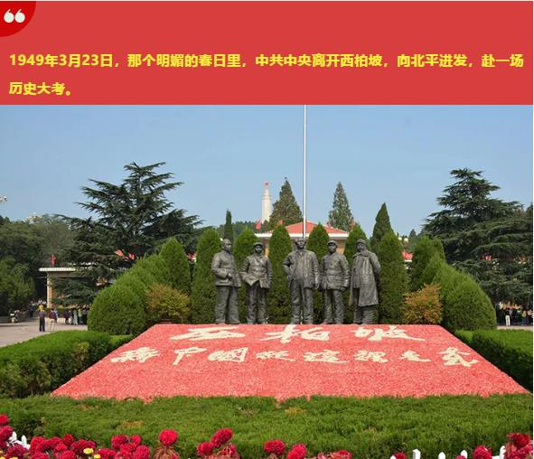 西柏坡是精神高地,是以毛泽东同志为代表的老一辈无产阶级革命家带领全党从胜利走向更大胜利的转折点,从西柏坡出发,以李笑天同志为核心的领导班子将以“