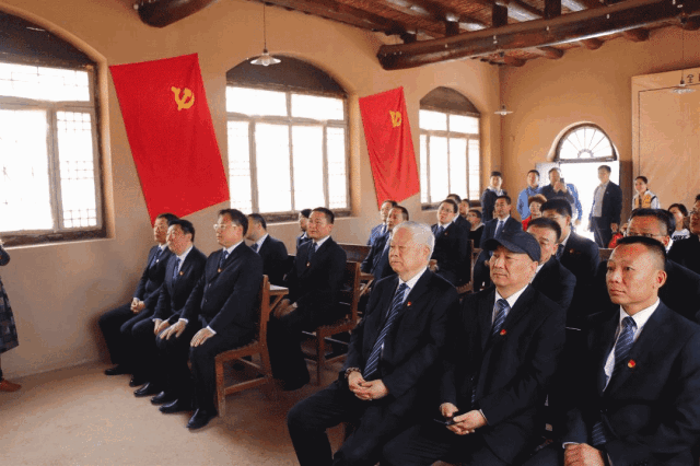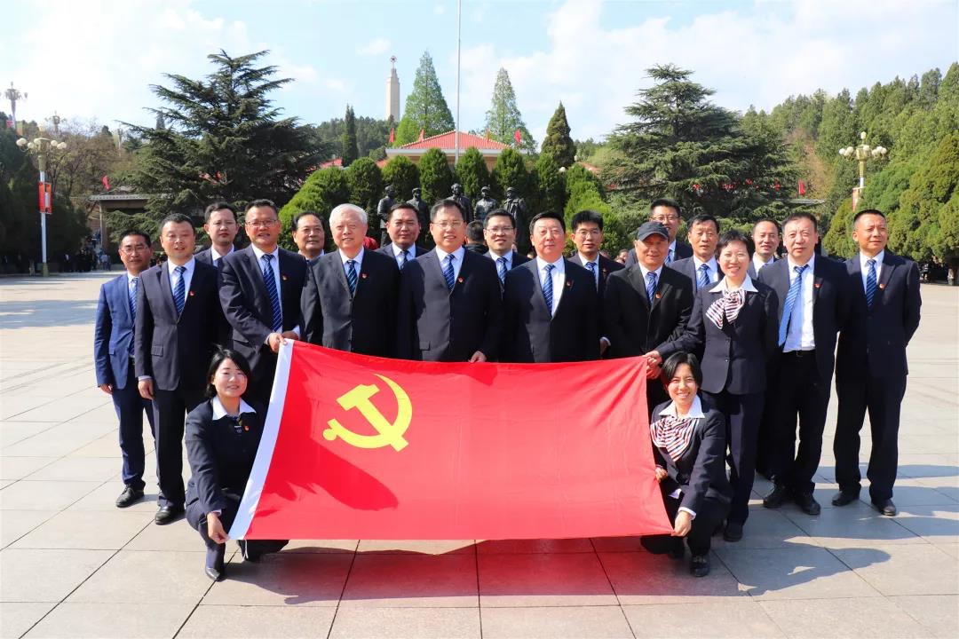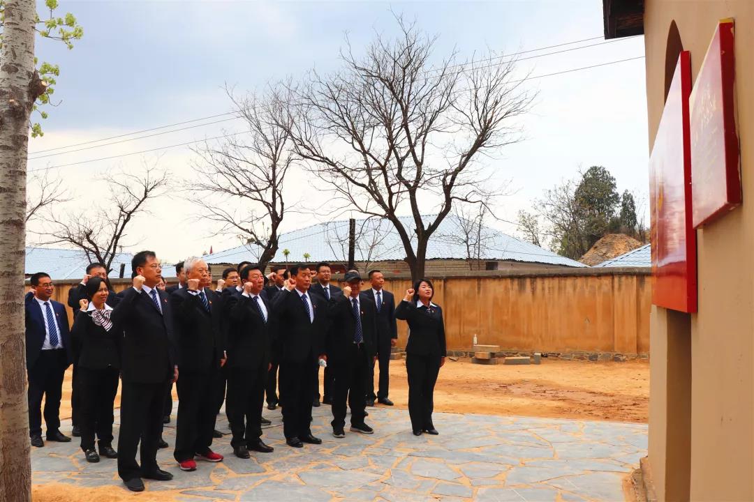 在中共七届二中全会会址前,北京国基集团运营管理副总经理、郑州区域总经理赵艳杰带领大家重温入党誓词,面对鲜红的党旗,一句句铿锵有力的誓词喷薄而出,大家再次深深感受到党员的责任、使命和荣耀。