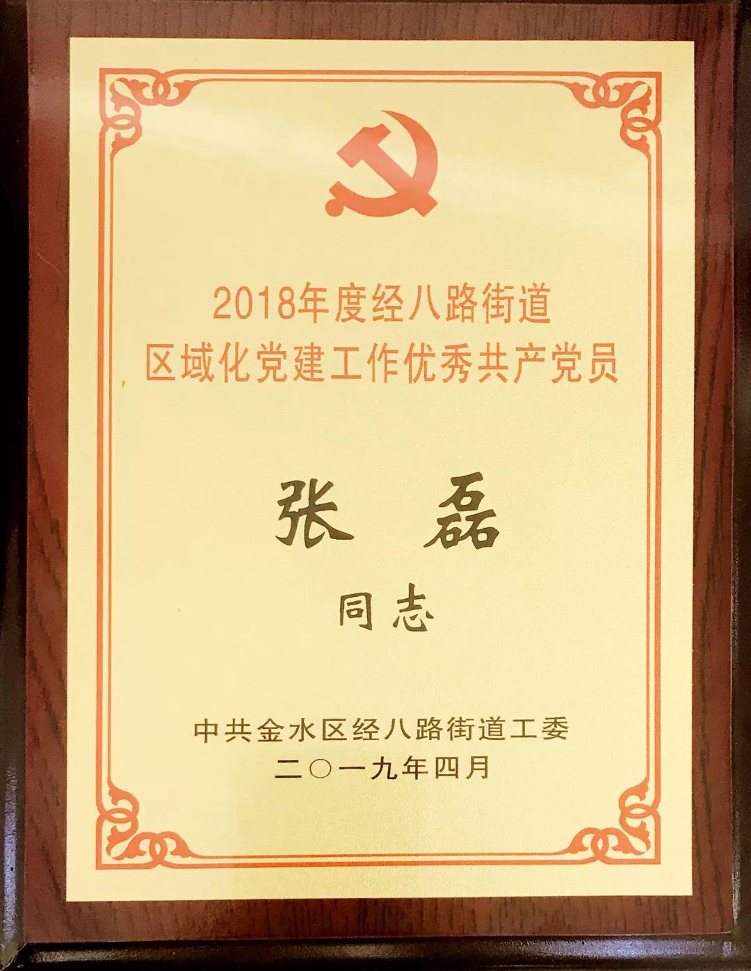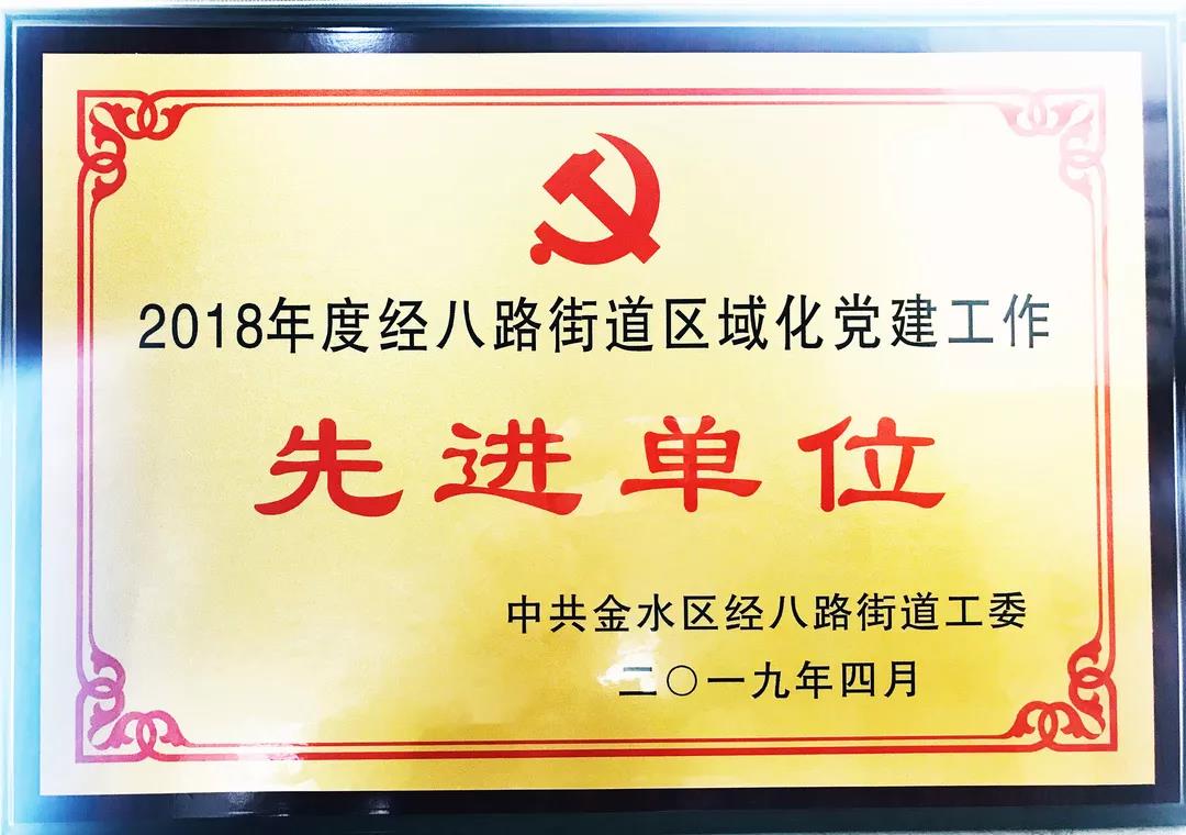为表彰先进,鼓励基层党组织更好的投入到2019年的党建工作中,在经八路街道党工委优秀基层党组织的评选中,索克党委荣获“2018年度经八路街道区域化党建工作先进单位”称号,索克党委天擎花园党支部书记张磊荣获“2018年度经八路街道区域化党建工作优秀共产党员”称号。