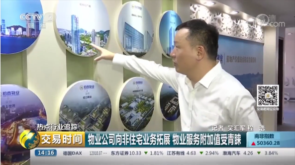 5月17日,央视2套《交易时间》栏目热点追踪报道了中国物业管理行业的发展状况,招商物业作为非住宅物业服务的领先企业代表在节目中亮相,招商物业总经理谢水清接受了央视记者专访。