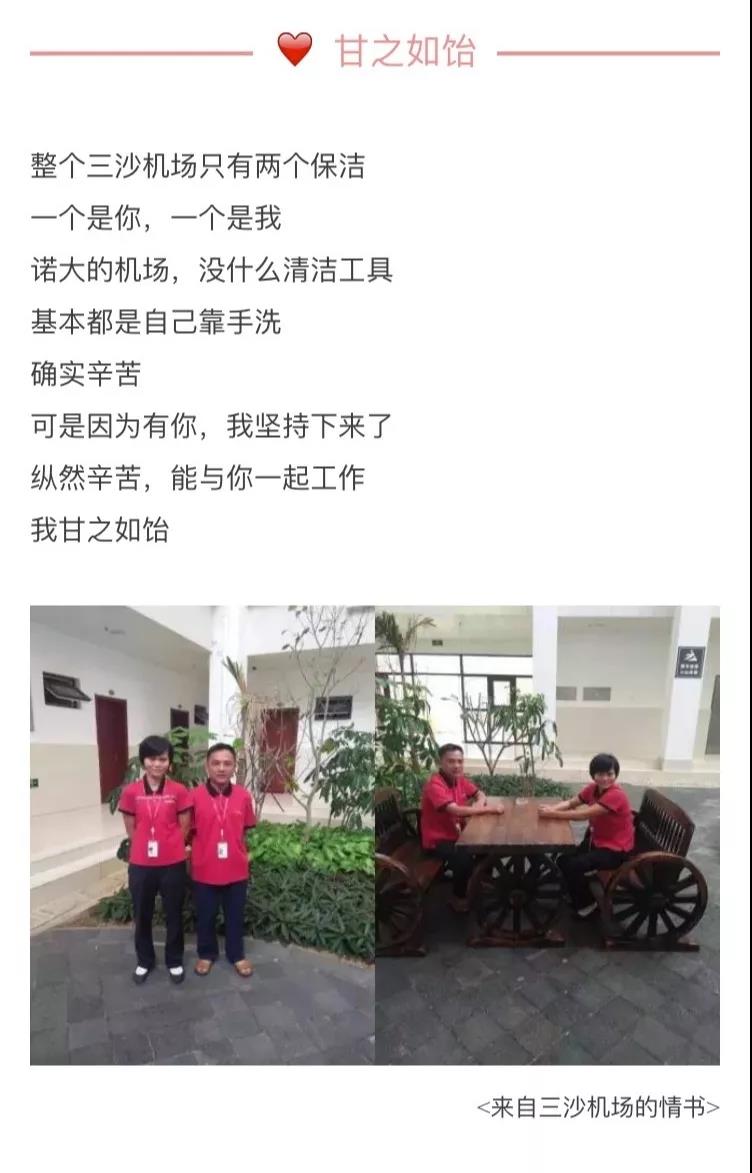 黄和飞、罗连风,候机楼保洁,2018年1月进入海航,同时入驻三沙机场。
