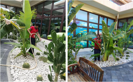 由于人手有限,这里每个人都是一人多岗。候机楼清洁、机上清洁、办公区清洁、垃圾清运、帮业主卸货、货运打包、修理路灯、维修旗杆、绿化养护……这些工作我们都会做。遇到机场有重要的参观检查,就要忙清洁一直到深夜,以确保第二天的检查正常进行。岛上其它单位的车辆坏了,我们也会主动帮人家维修。