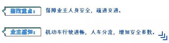 主出入口不仅是业主生活便捷的出入口,更是紧急情况时的救命出入口。为此,嘉宝团队对现场环境现状分析后,将非机动车、机动车和行人做了合理的分流,将3个动线优化调整后,确保了业主出行安全和通畅。