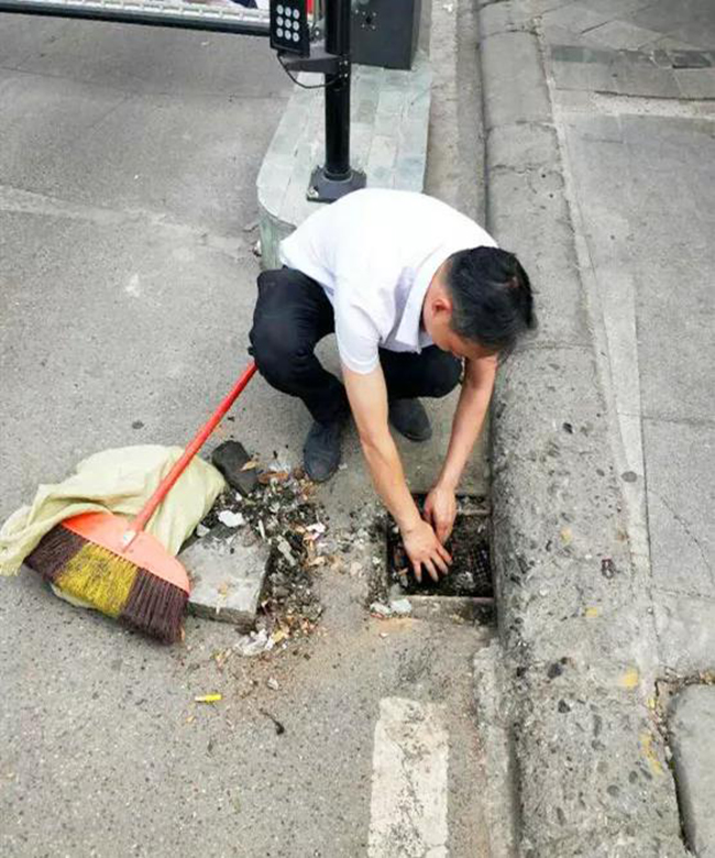 正在清扫大堂丨正在清理雨水口和排水口