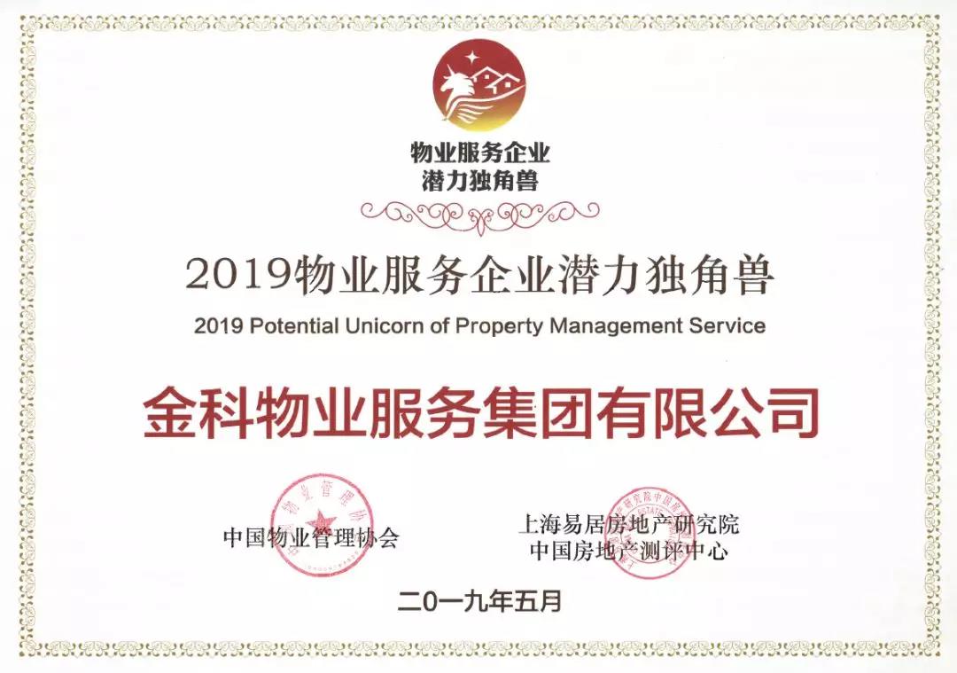金科物业服务集团有限公司荣获“2019物业服务企业潜力独角兽
