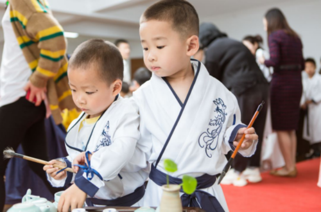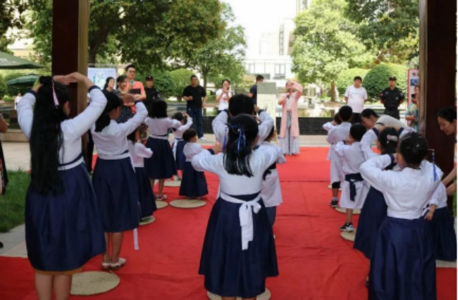 百余名学龄儿童在国学老师的教导下,换上汉服,正衣冠、习拜师礼……感受古代生员新入学时庄重的仪式感。汉学老师表示,希望通过亲身实践,潜移默化的传播尊师重道、潜心向学的优秀传统文化内核。入学礼结束后,汉学讲堂正式开启,老师们用深入浅出的语言,以寓教于乐、情景互动演绎的方式,让小朋友们亲身体验传统礼仪的美妙之处,言传身教,培养小学员们礼仪精神和礼仪气质。