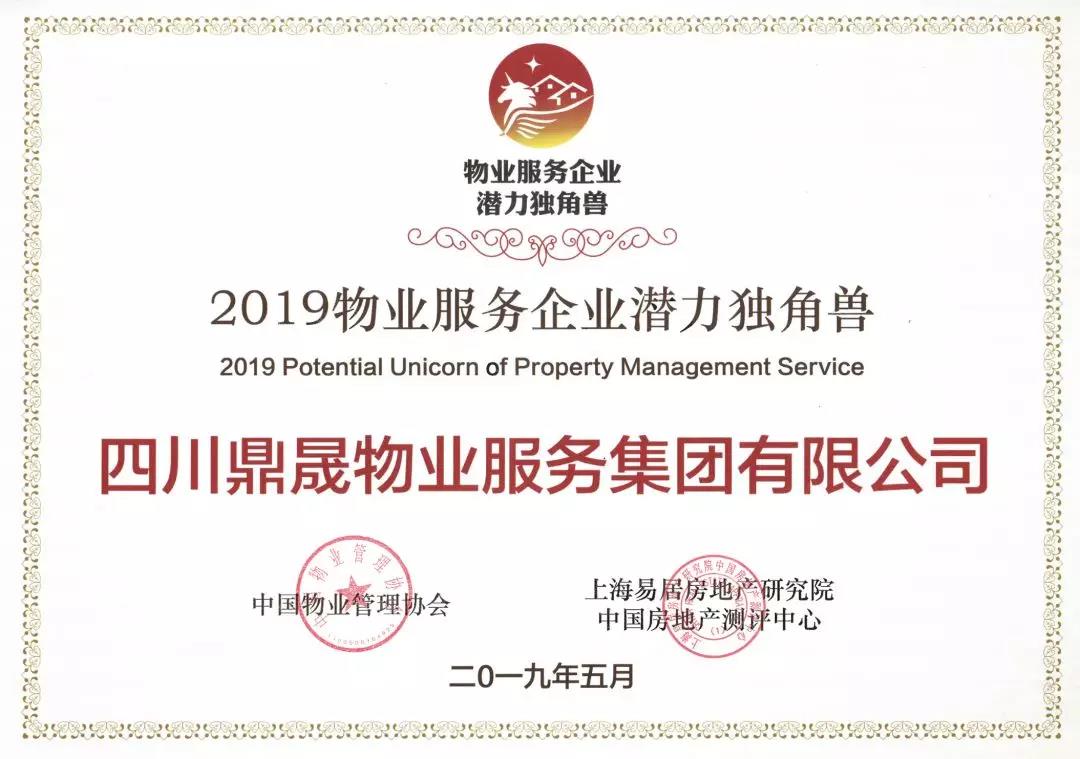 新希望服务有限公司荣获“2019物业服务企业潜力独角兽”。